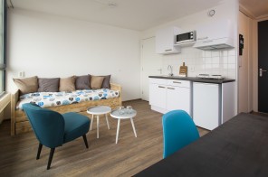 "Je woont aan het water, hebt alles voor jezelf (incl. keuken, douche en wc). Ook is er een lounge en studieruimte aanwezig. En je fiets parkeer je in de inpandige fietsenstalling. Ook is er voldoende parkeergelegenheid aanwezig voor je auto. Het is echt heerlijk thuiskomen in je eigen studio"